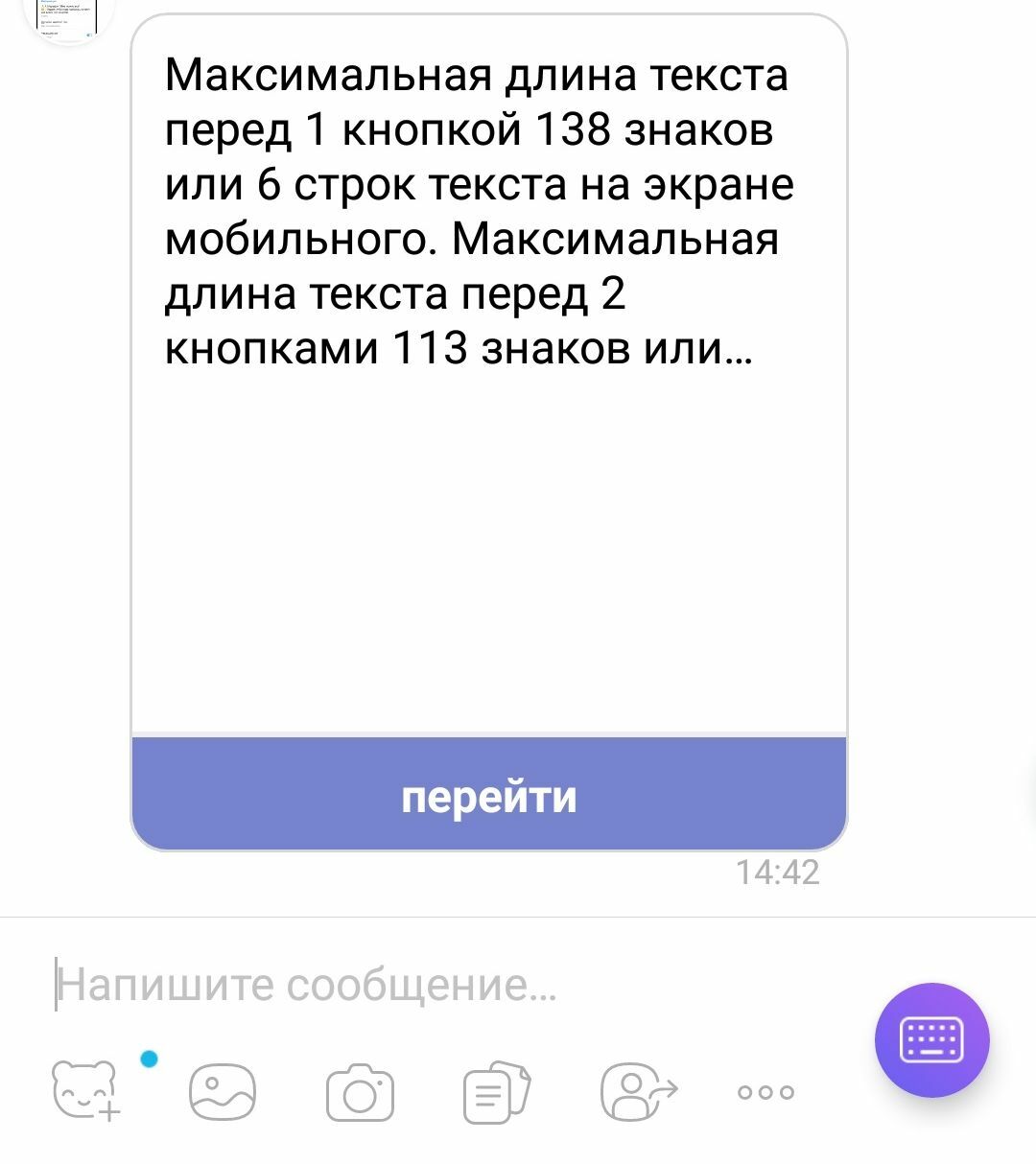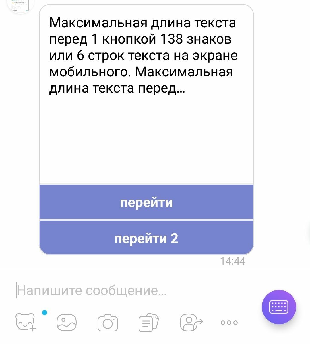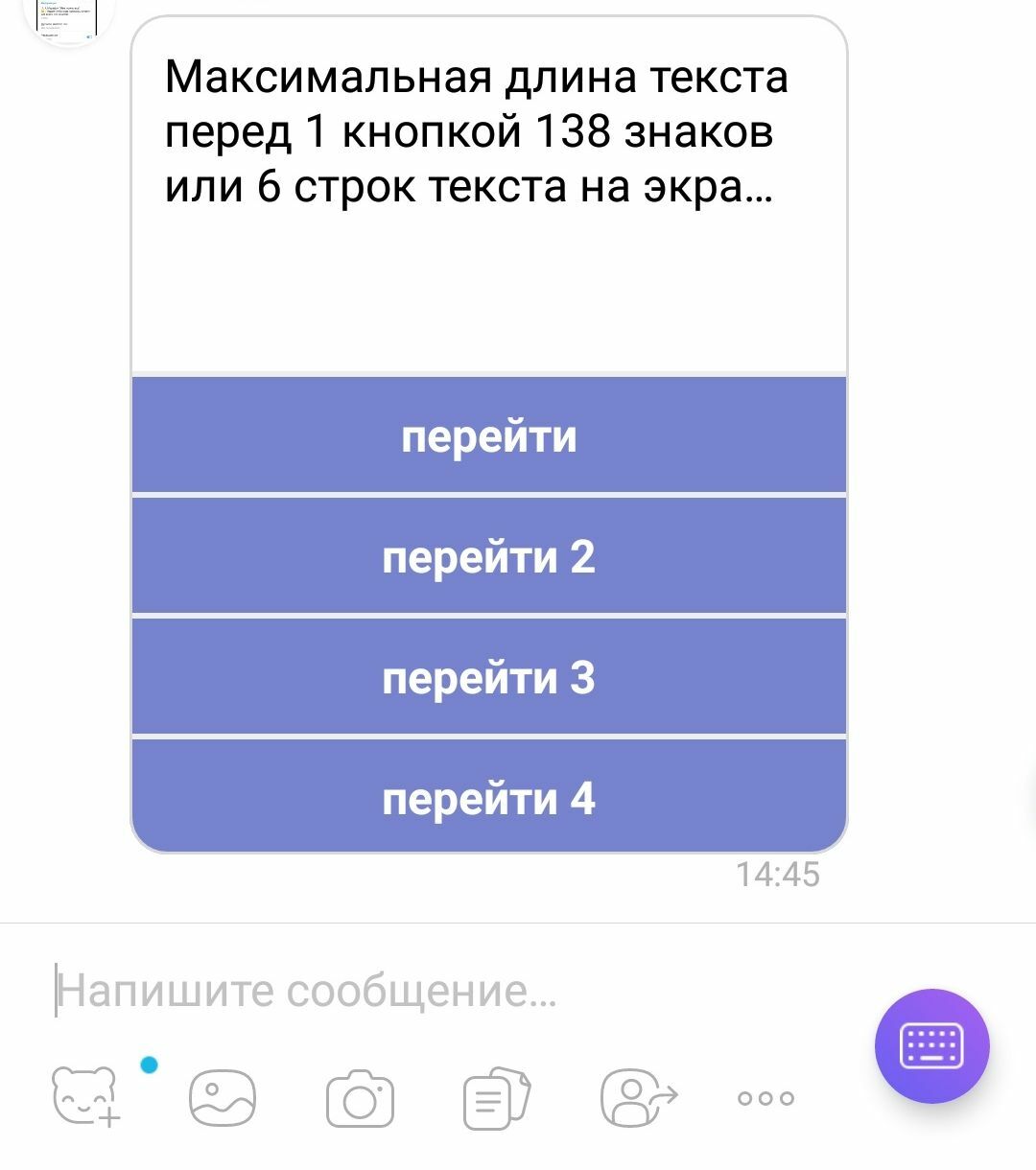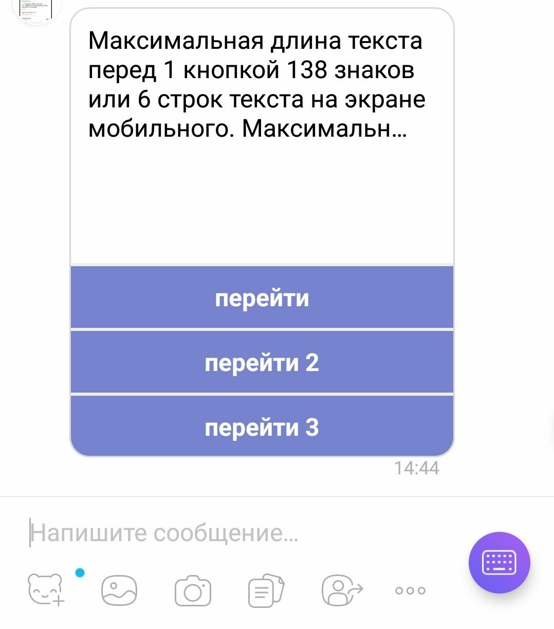 В Telegram можно добавить до 11 инлайн кнопок. Кнопки располагаются по 1 или по 2 в ряд. Перед кнопками обязательно нужно добавить текст от 1 до 2000 символов. Не рекомендуется задавать длинное название кнопок, т.к. оно будет обрезаться и на разных устройствах выглядеть по-разному.