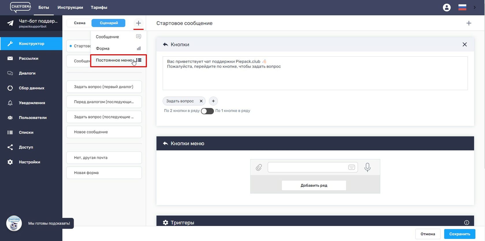 Присутствуют в ботах Telegram, Viber, VK, Facebook.