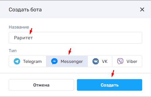 В ботах Facebook можно создавать текстовые сообщения, галереи, добавлять кнопки, использовать кнопки быстрых ответов, добавлять геолокацию, использовать AI - теги.