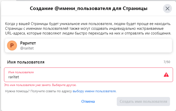 Не всегда для новой страницы на Facebook сразу можно создать имя пользователя. Это можно сделать позже.