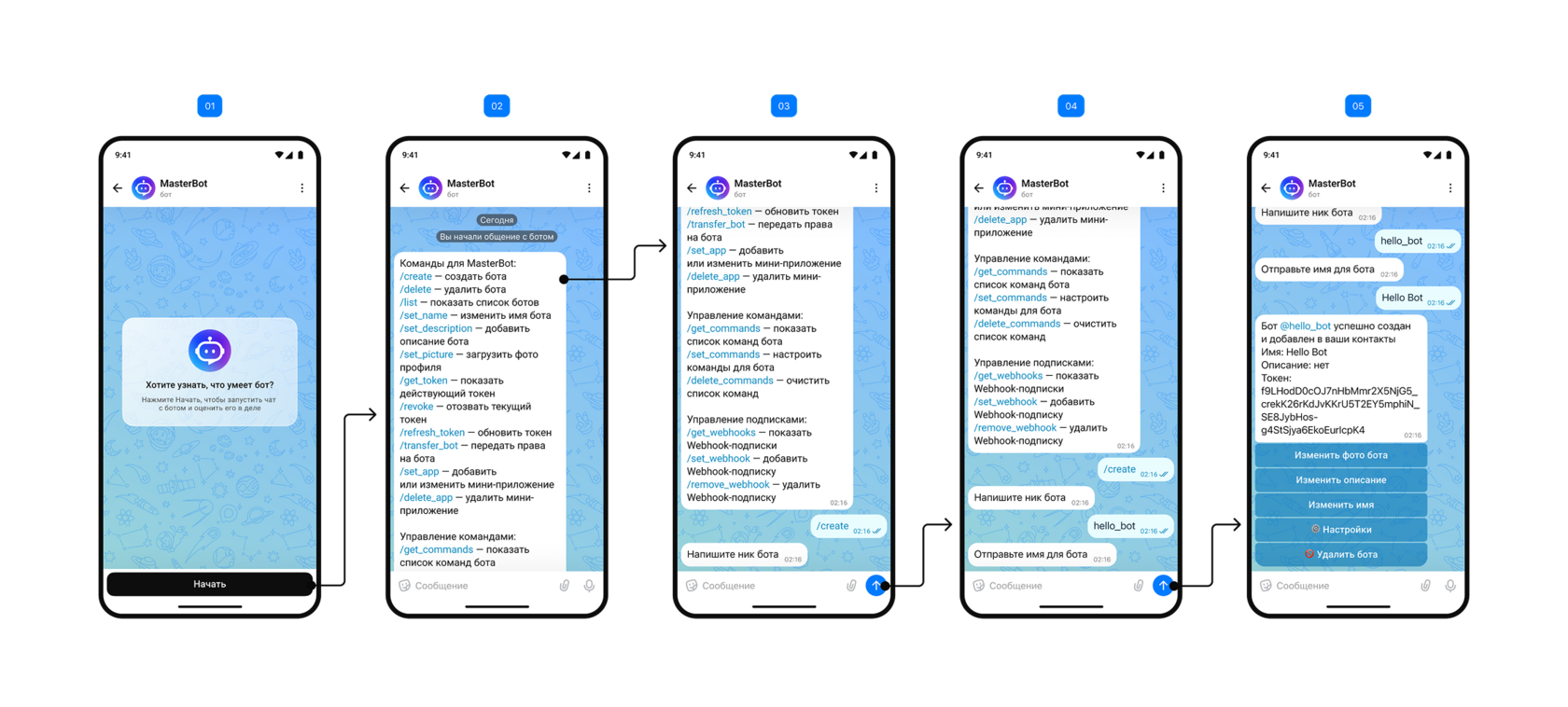 Шаг 5: Как только @MasterBot получит имя, вам придёт токен — уникальный идентификатор бота, с помощью которого он будет взаимодействовать с API MAX. Наличие токена означает, что бот зарегистрирован в MAX.