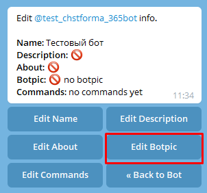 Шаг 6: Добавляем аватарку нашему боту. Нажимаем на команду Edit botpic.