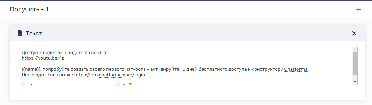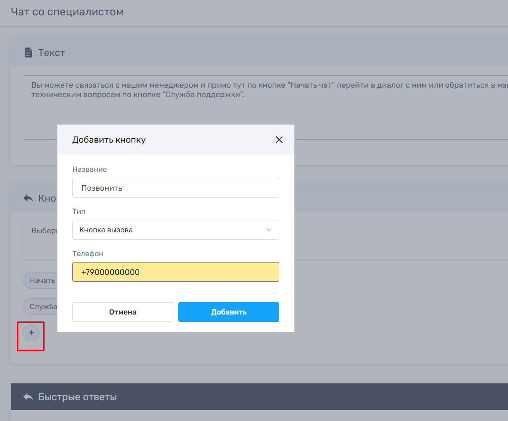 Добавьте в текст сообщения ссылки на сайт или номер телефона. Используйте кнопки «Быстрых ответов», чтобы направлять пользователя на сообщения внутри бота.