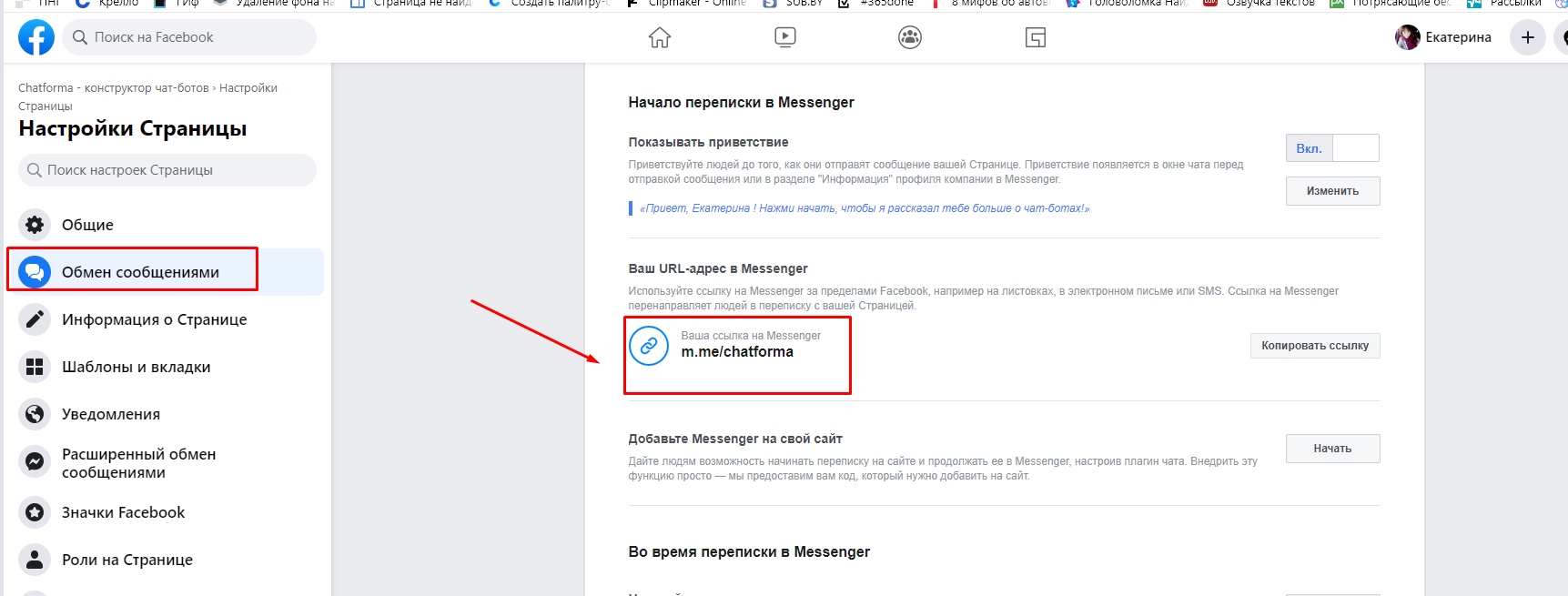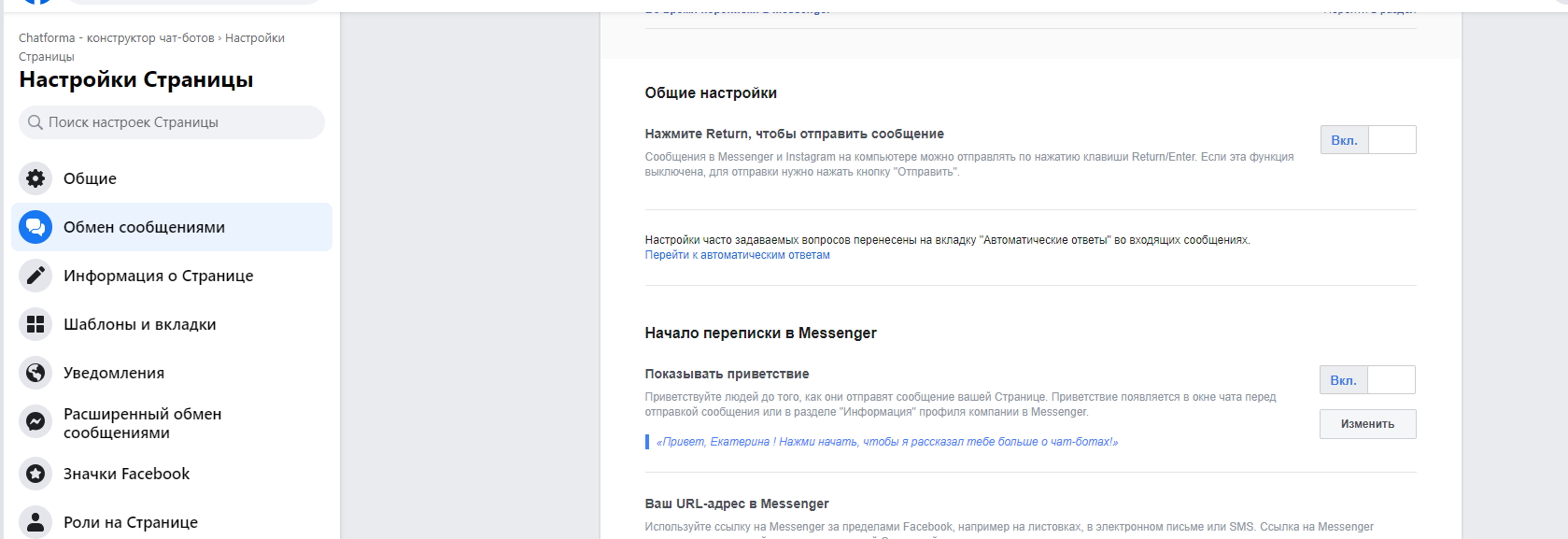 Доступной остаётся прямая ссылка вида m.me, которая перенаправляет пользователя на общение с чат-ботом компании.