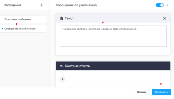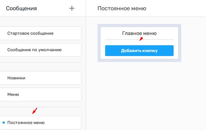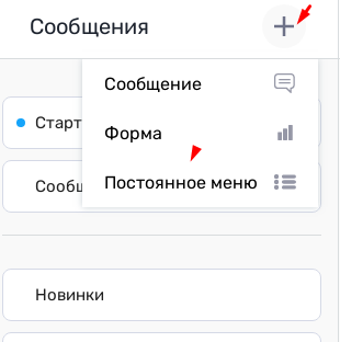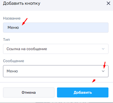 Шаг 3: Теперь добавляем кнопку. Нажимаем на "+", вводим название кнопки, выбираем сообщение и нажимаем "Добавить".