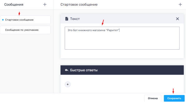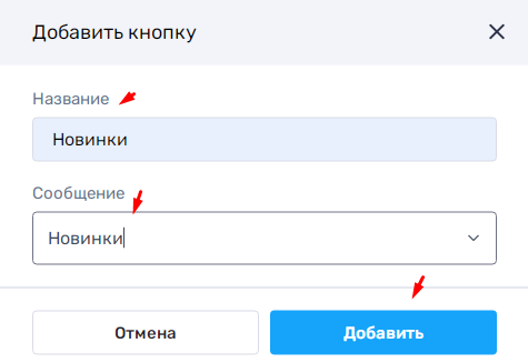 Шаг 2: Пишем название кнопки, выбираем сообщение и нажимаем "Добавить".