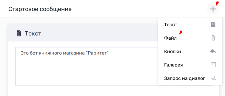 Шаг 1: Нажимаем на "+" в правом верхнем углу и выбираем из списка "файл".