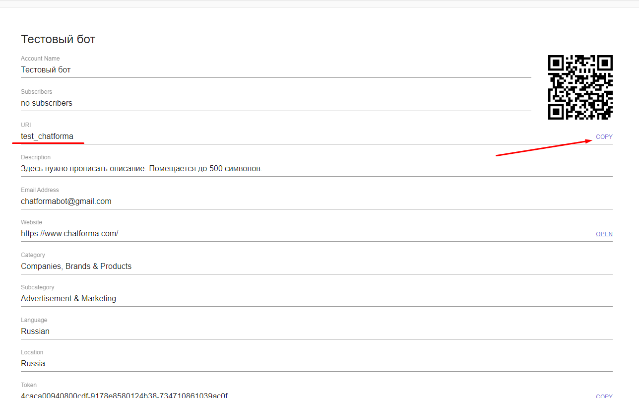 exit(); и в uri (выделено жирным шрифтом) вставьте свой никнейм бота.