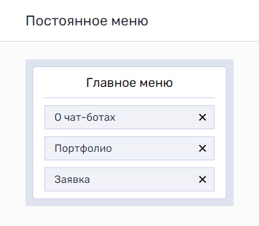 Принцип работы постоянного меню в ботах телеграма и вайбера такой же как и у кнопок динамического меню.